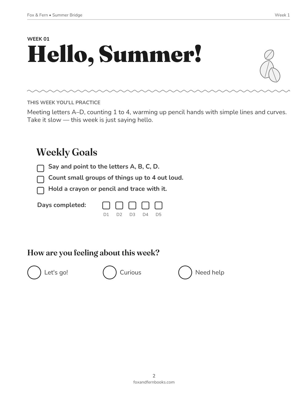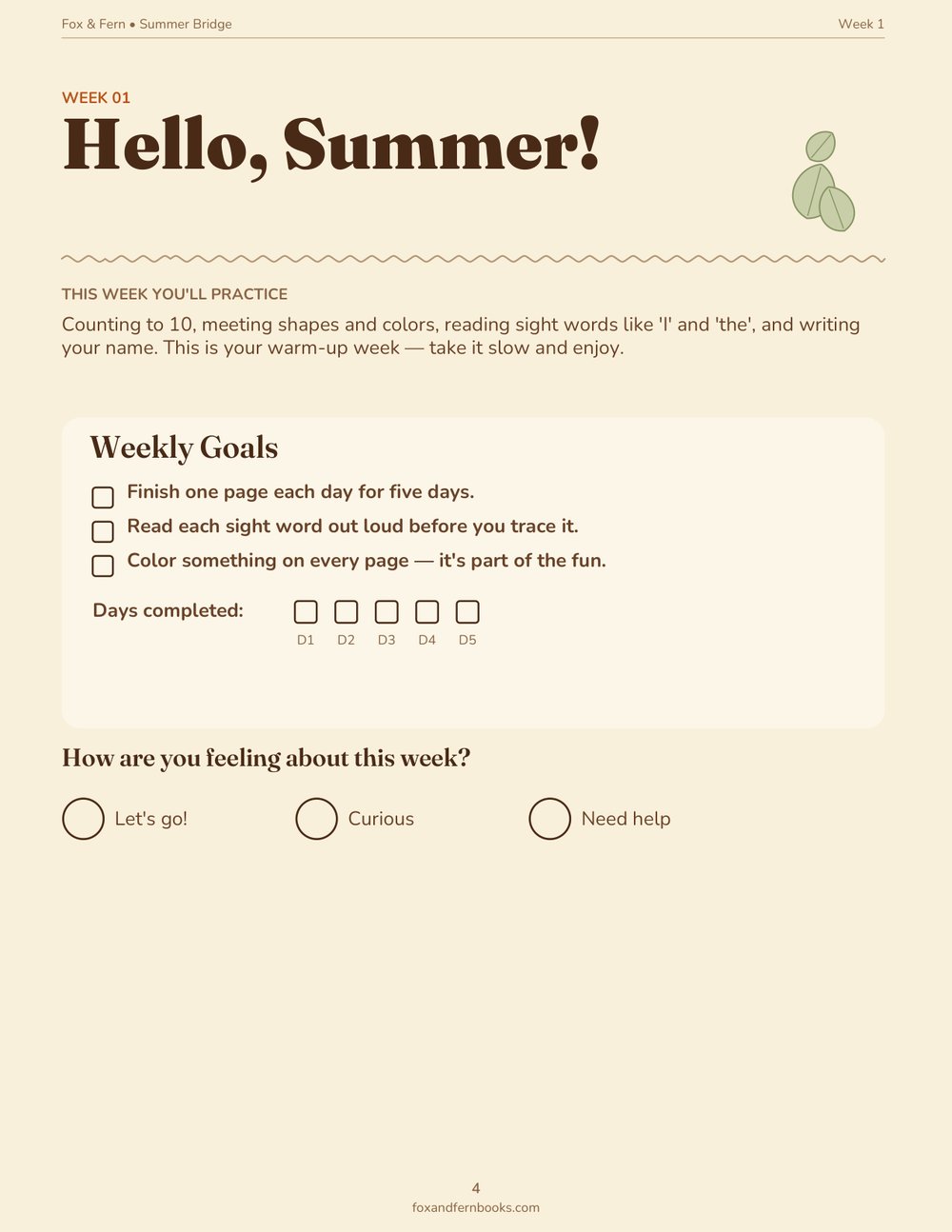 Most pages take 15-20 minutes. The book is designed to fit a real summer.